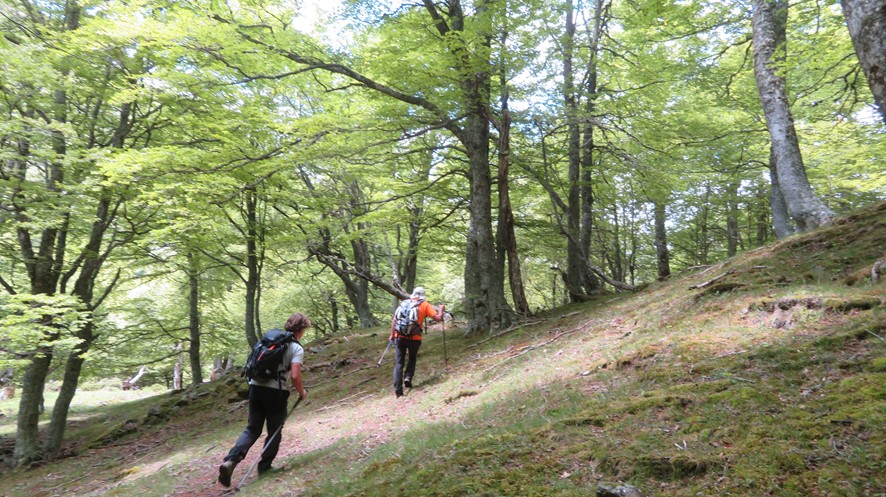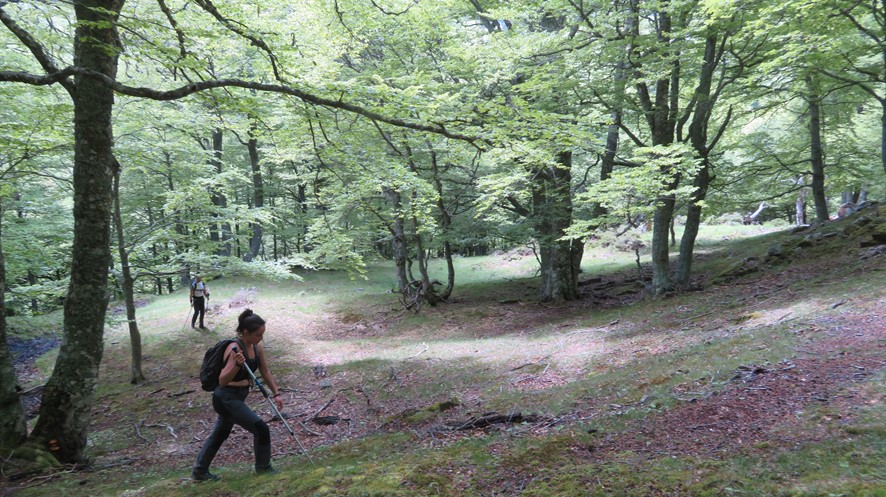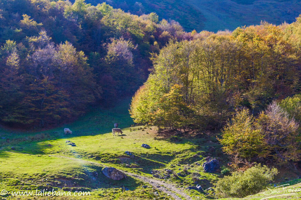 En el tránsito de la Vega de Arriba a la Vega de Salvorón tendremos que atravesar dos magníficos hayedos, el Monte Rojaldanes y el Monte Montecepo, cuyos arroyos fluyen como si fueran las arterias y venas del corazón del bosque. Iremos avanzando sobre alfombras de hojas que tapan los viejos caminos, pasando entre cientos de ejemplares de alto porte, como si lo hiciéramos por un templo sagrado donde nos piden silencio. Con la atmósfera creada por los colores del otoño, el silencio será necesario para sumergirnos en el corazón del bosque y sentir sus latidos.