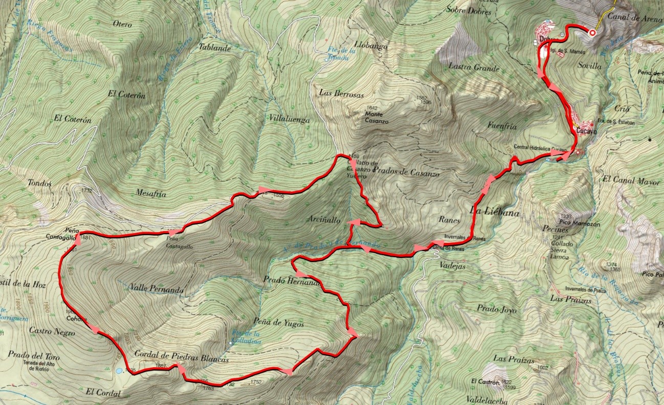 RECORRIDO: TUNEL DE DOBRES 935m – Dobres – Cucayo – Invernales de Ranes Tejos de Cucayo – PICO COHORA 1962m – Peña Cantagallos – Collado Casanzo Yudero     Ivernales de Ranes – Cucayo – Dobres – TUNEL DE DOBRES 935m.