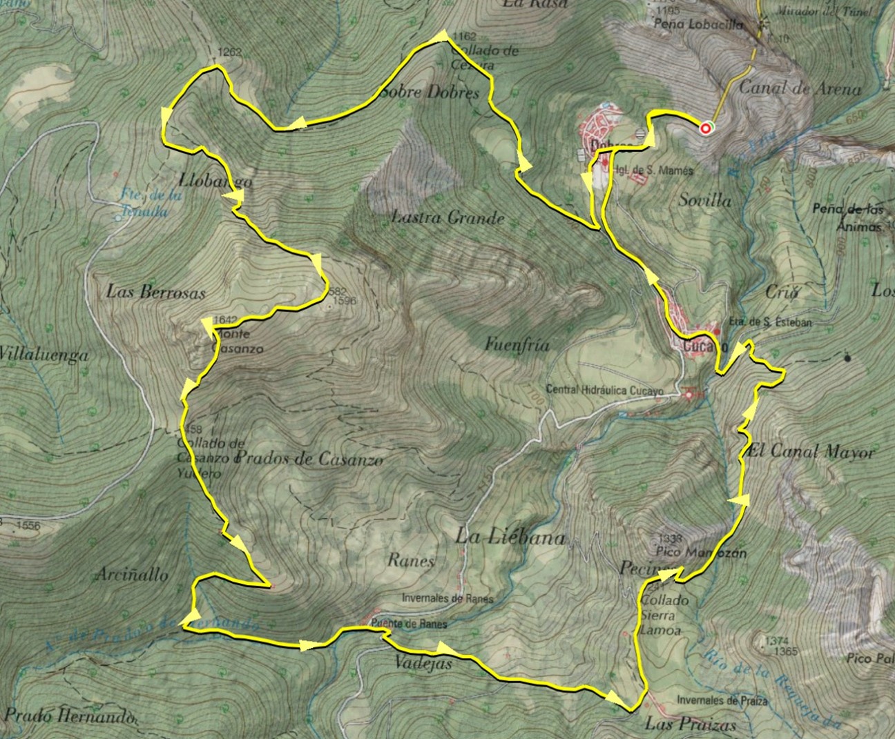 RECORRIDO: TUNEL DE DOBRES 935m – Dobres – Collado de Cezura – MONTE CASANZO 1652 – Collado de Casanzo – Invernales de Ranes – Collado de Sierra Lamoa – El Canal Mayor – Cucayo – Dobres – TUNEL DE DOBRES 935m.