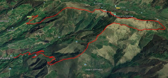 RECORRIDO: ALTO DE CARACOL 825 – La Cotera – Coterotejo 1051 – Alto de Cerrocrespo – Cerrocrespo – Picón de la Bayorga Honda 1131 – Alto Sopeña LA ZAMINA 1255 – Llano de Perocampillo – Campizo Real – Peña Abedul Guzmazán – PISUEÑA 381.