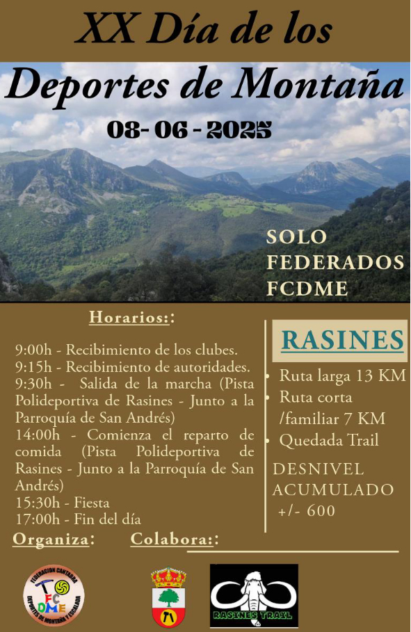 - 09:30 Salida de la marcha (Pista Polideportiva de Rasines – Junto a la parroquia de San Andrés)