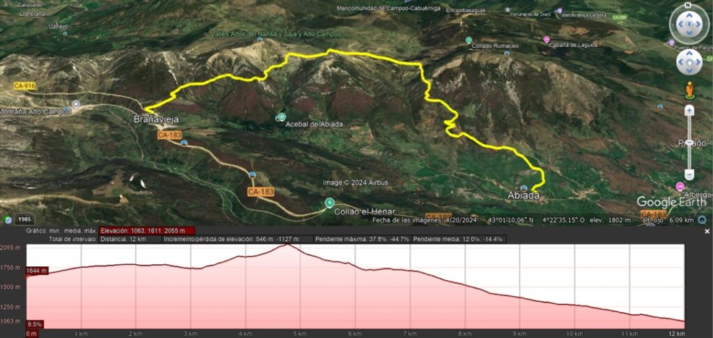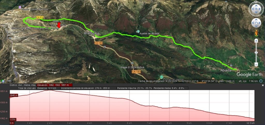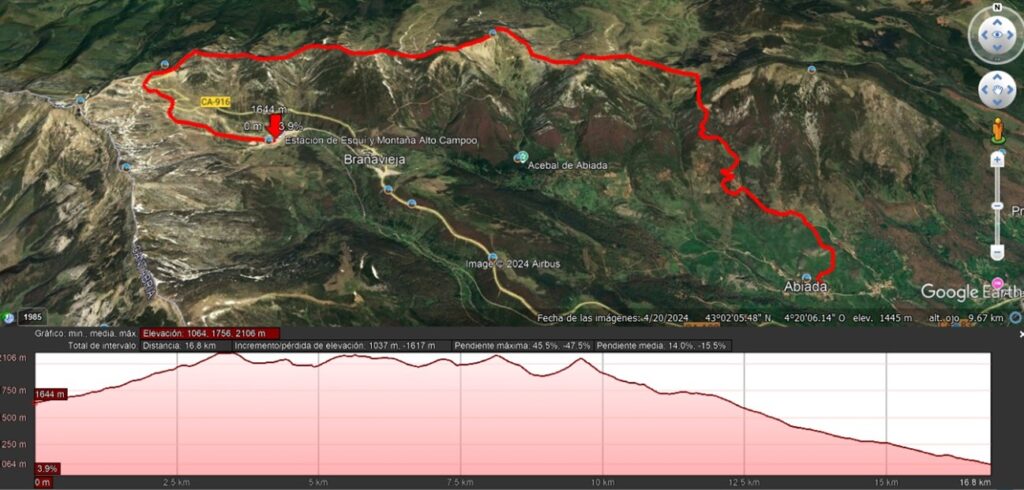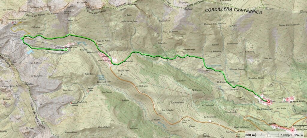 RECORRIDO: Calgosa 1650m – El Chivo 1863m – Brañavieja 1630m – Abiada 1060m.