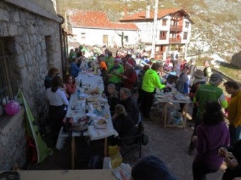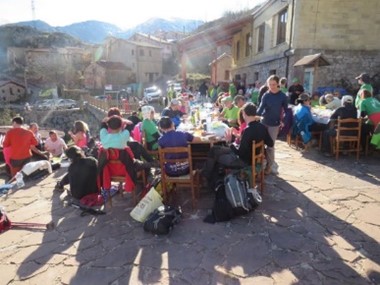 Comeremos de mochileros, con lo que cada cual aporte, tortilla, empanadas, dulces, sidra, vino, orujo…. lo llevas, lo pones en las mesas y a… picotear.